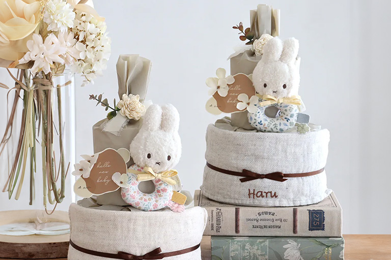 - おむつケーキ・おくるみ・フード付きバスタオル など