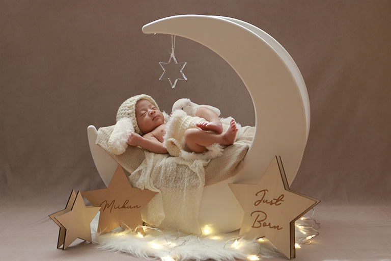 - おうちで撮影する新生児期赤ちゃんの記念写真。セルフ ニューボーン フォト レンタル