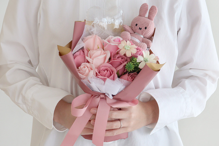 - フラワーアレンジ・お名前入りマグカップ・つみき・ぬいぐるみ など